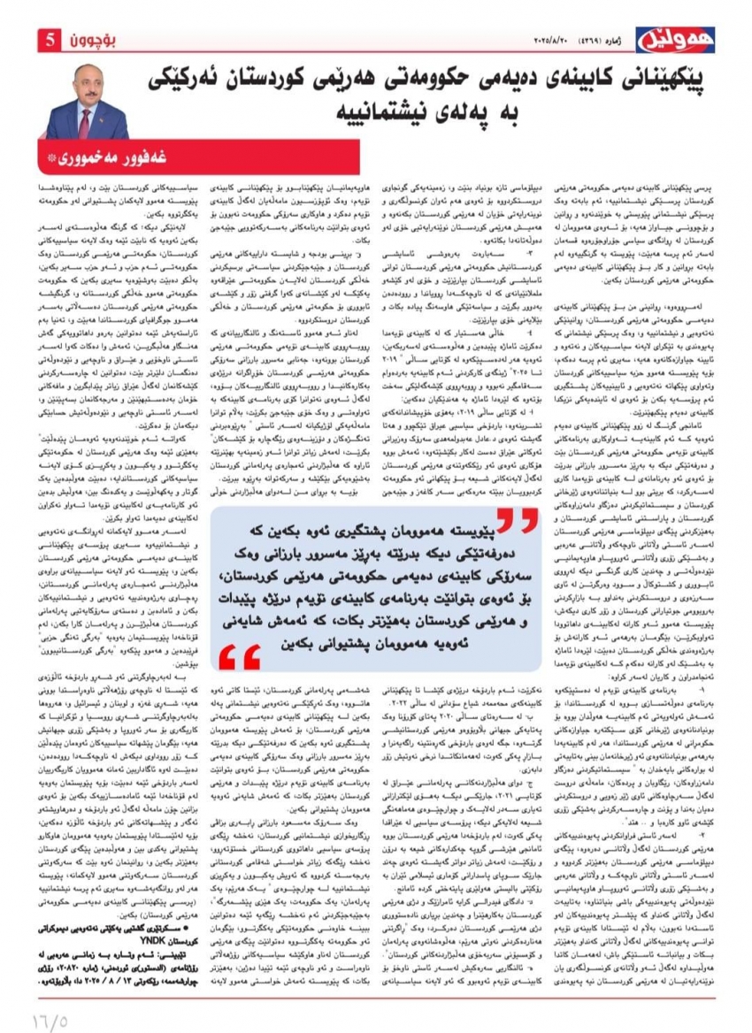 ئەم وتارە، ئەمڕۆ چوارشەممە، رێکەوتى 20 / 8 / 2025 ، لە ژمارە 3469 ی رۆژنامەى (هەولێر)دا، بڵاوبۆتەوە.